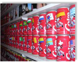 Cola mit all seinen Unterarten, also alle Dosen, auf denen der Coca-Cola Schriftzug