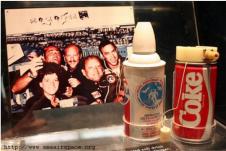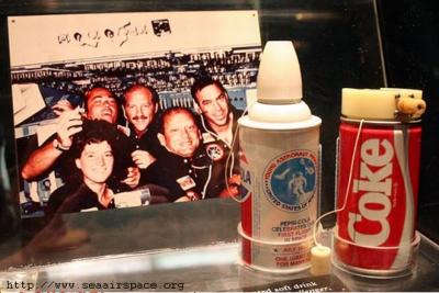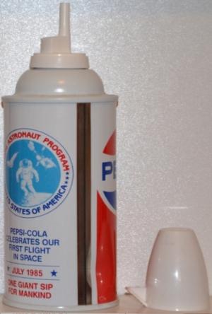 der eigens für das Weltall entwickelten Dosen von Coca-Cola und Pepsi-Cola